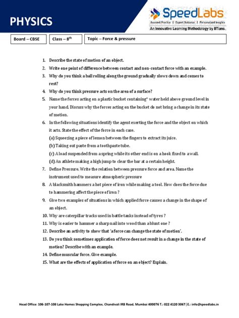 • Make sure you have a solid understanding of the underlying concepts. Knowing the definitions of force, pressure, and related terms will help you solve problems more effectively.