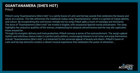 So, why is “Guantanamera” still considered she’s hot after all these years? It’s not just about the catchy melody or the historical significance; it’s about the emotional connection it creates. This song has a way of reaching into your soul and stirring something deep within. It evokes feelings of joy, nostalgia, and a sense of belonging. It reminds us of the power of music to transcend cultural boundaries and connect us to one another. The eternal flame of “Guantanamera” is fueled by its authenticity and its timeless appeal. It’s a song that speaks to the human experience, to our hopes, our dreams, and our struggles. It’s a song that celebrates life, love, and the enduring spirit of the human race. “Guantanamera” continues to inspire new generations of musicians and listeners. Its message of hope and resilience is as relevant today as it was when it was first written. It’s a reminder that even in the face of adversity, we can find strength in our culture, in our community, and in our shared humanity. She’s hot because it makes us feel alive, that it stirs our emotions, and that it reminds us of what it means to be human. The song is a testament to the power of music to shape our perceptions, to influence our emotions, and to inspire us to action. The eternal flame of “Guantanamera” will continue to burn brightly for generations to come, illuminating the world with its beauty, its passion, and its enduring message of hope. The song has become a symbol of cultural pride and national identity, uniting people from all walks of life in a shared celebration of Cuban heritage. It’s this combination of musical excellence, lyrical depth, and cultural significance that makes “Guantanamera” such a timeless and beloved classic. The she’s hot factor is not just a passing fad; it’s a reflection of the song’s enduring power to captivate, inspire, and uplift.
