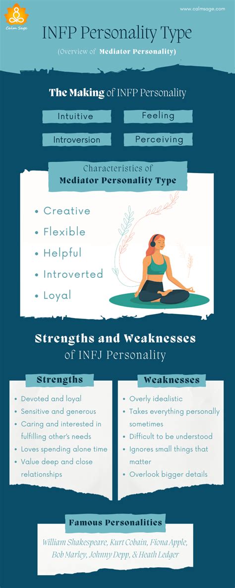 However, INFPs also have their weaknesses. INFPs may become overly sensitive . They can be easily hurt by criticism or negativity. This can lead to self-doubt and withdrawal. They also can be prone to perfectionism . They often set unrealistically high standards for themselves. This can lead to stress, anxiety, and a feeling of inadequacy. INFPs sometimes are struggling with practicality . They may struggle to focus on the details and practicalities of everyday life. They can become overwhelmed by the mundane aspects of life. They are prone to indecisiveness . INFPs can struggle to make decisions, particularly when faced with multiple options. They tend to overthink and analyze situations, leading to procrastination. They have the possibility of being unrealistic . They may struggle to separate their ideals from reality. This can lead to disappointment and disillusionment when faced with the harsh realities of the world. Being aware of these strengths and weaknesses, INFPs can use these insights to build stronger relationships and navigate life’s challenges more effectively. It can also help them make choices that are aligned with their values.