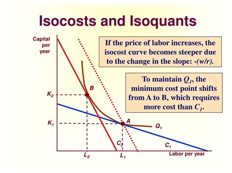 • Manufacturing : A manufacturing company might use isoquants and isocosts to determine the optimal mix of labor and capital for producing a certain number of widgets. They would consider the cost of labor (wages) and the cost of capital (machinery) and then choose the combination that minimizes their production costs.