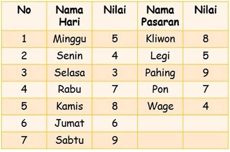 . Apa sih sebenarnya Neptu itu? Neptu adalah angka atau nilai yang diberikan pada setiap hari (Minggu, Senin, Selasa, dst.) dan setiap pasaran (Legi, Pahing, Pon, Wage, Kliwon). Setiap hari dan pasaran punya bobot angka yang berbeda-beda, dan ini bukan angka sembarangan, lho. Angka-angka ini punya makna filosofis dan energetik tersendiri dalam kepercayaan Jawa. Misalnya, Minggu itu punya neptu 5, Senin 4, Selasa 3, Rabu 7, Kamis 8, Jumat 6, dan Sabtu 9. Sementara itu, untuk pasaran, Legi punya neptu 5, Pahing 9, Pon 7, Wage 4, dan Kliwon 8. Nah, dari kombinasi hari dan pasaran inilah lahir yang namanya