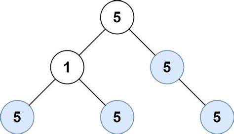 • If both subtrees are univalue subtrees, check if the current node’s value matches the values of its children (if they exist).