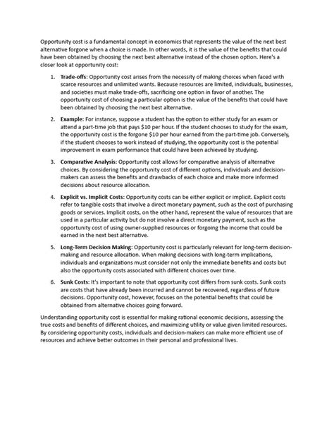 Okay, so before we get deep into Nike’s world, let’s make sure we’re all on the same page about what opportunity cost really means. Simply put, opportunity cost is the value of the next best alternative you give up when making a decision. It’s not just about the money you spend; it’s about what else you could have done with those resources. Imagine you have \(100. You could buy a new pair of sneakers or invest it in the stock market. If you choose the sneakers, the opportunity cost isn't just the \) 100 you spent, but also the potential return you could have earned from investing that money. This concept applies to everything from personal decisions to massive corporate strategies. For a company like Nike, opportunity cost comes into play in every major decision they make. Should they invest in a new line of running shoes or expand their apparel offerings? Should they focus on marketing to younger consumers or try to capture a larger share of the older demographic? Each of these choices has an opportunity cost, and understanding these trade-offs is crucial for making informed decisions. Opportunity cost helps businesses evaluate the potential benefits they might be missing out on and ensures they allocate their resources in the most efficient way possible. By considering the alternatives, companies can make strategic choices that maximize their overall value and minimize potential regrets. This is why understanding opportunity cost is so vital in the business world, especially for giants like Nike.