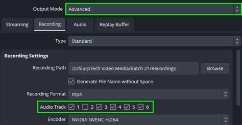 7. Recording Settings: Go to “Settings” -> “Output” -> “Recording.” Set the “Recording Format” to mp4 or mkv . Then, under “Audio Tracks,” make sure the tracks you assigned in the previous step are enabled.