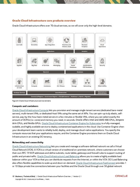 When you look at the Oracle Cloud Infrastructure architecture diagram , the Compute services are where your actual applications run. This is the engine room, guys! OCI offers a variety of compute options to suit different needs. The most common is Compute Instances . These are virtual machines that you can provision and manage just like you would a physical server. You choose the shape (CPU, memory, storage), the operating system (Linux, Windows), and attach block storage volumes. You can scale these instances up or down as needed. They are the workhorses for many traditional applications and workloads. Then we have Containers . OCI provides Oracle Container Engine for Kubernetes (OKE) , a fully managed, scalable, and highly available service for deploying, managing, and scaling containerized applications using Kubernetes. If your applications are packaged as containers, OKE is your go-to solution. It abstracts away much of the complexity of managing Kubernetes clusters, allowing you to focus on your applications. For more modern, event-driven architectures, OCI offers Functions . This is a serverless compute platform that allows you to run code in response to events without provisioning or managing servers. You write your code, deploy it as a function, and OCI handles the underlying infrastructure. It’s perfect for microservices, data processing, and automation tasks where you only pay for the compute time you consume. Each of these compute options has its own place in the OCI architecture, depending on your application’s requirements for control, scalability, and operational overhead. Whether you need the full control of a VM, the orchestration power of Kubernetes, or the simplicity of serverless, OCI has you covered. Understanding these compute services is vital because they are where your business logic truly lives and breathes.