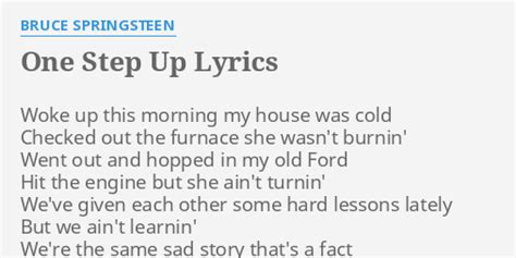 Hey guys! Have you ever found yourself humming along to a song, loving the vibe, but not quite grasping the full meaning behind the lyrics? Yeah, we’ve all been there. Today, we’re diving deep into a classic: Bruce Springsteen’s “One Step Up.” This isn’t just about the melody; it’s about unraveling the story The Boss is telling. So, let’s get started and really understand what this song is all about. We will explore the themes, the nuances, and the raw emotion packed into those verses. Trust me, once you get it, you’ll appreciate the song on a whole new level. Bruce Springsteen, a master storyteller through music, paints vivid pictures of American life, love, and struggle. His songs often resonate because they capture the complexities of human relationships and the search for meaning in a sometimes harsh world. “One Step Up” is a prime example of this, delving into the intricacies of a relationship on the brink, where love and frustration intertwine. Understanding the lyrics is key to unlocking the emotional depth of the song and appreciating Springsteen’s artistry. The beauty of Springsteen’s songwriting lies in its ability to be both deeply personal and universally relatable. He taps into emotions and experiences that many of us can recognize in our own lives, making his music incredibly powerful and enduring. “One Step Up” is a testament to this, offering a poignant reflection on the challenges of love and commitment. The song’s narrative explores the complexities of a relationship teetering on the edge, capturing the subtle shifts in emotion and the unspoken tensions that can slowly erode even the strongest bonds. By understanding the context and meaning behind the lyrics, listeners can gain a deeper appreciation for the song’s emotional resonance and its insightful portrayal of human relationships. So, buckle up, and let’s dissect this masterpiece together!
