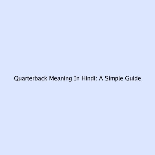Quarterback Meaning In Hindi: A Simple Guide