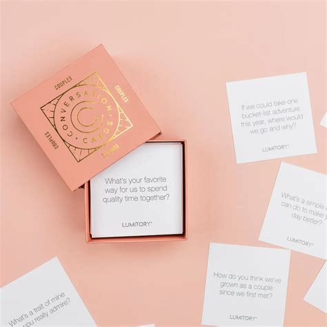 Okay, you’ve got your deck of cards for conversation couples edition – now what? Don’t worry, it’s super easy! Here’s a simple guide to get you started. First, choose the right time and place. Find a time when you’re both relaxed, comfortable, and free from distractions. This could be during a quiet evening at home, a weekend getaway, or even a cozy date night. Make sure you’re both in a good mood and ready to engage in meaningful conversation. Set the mood. Create a relaxed and intimate atmosphere. Light some candles, put on some soft music, and pour yourselves your favorite drinks. Make it a special occasion that you both look forward to.