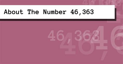 Hey guys! Today we’re diving deep into a number that might seem a bit random at first glance: 46363 . What’s so special about it? Well, numbers often hold hidden meanings and significance across various fields, from mathematics and numerology to history and even technology. Let’s break down 46363 and explore what makes it interesting.