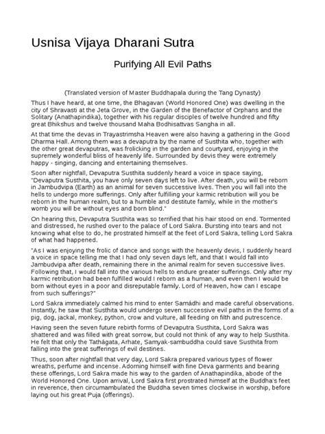 Hey everyone! Today, we’re diving deep into something really special: the Usnisa Vijaya Dharani Mantra PDF . If you’ve been looking for a way to harness powerful spiritual energy, understand ancient Buddhist practices, or simply find a deeper sense of peace and protection, you’ve come to the right place, guys. This mantra is not just a string of words; it’s a potent tool that has been used for centuries to overcome obstacles, purify negative karma, and achieve spiritual enlightenment. We’ll explore what the Usnisa Vijaya Dharani is, why it’s so significant, and where you can find reliable PDF versions to incorporate it into your practice. Get ready to unlock a new level of understanding and spiritual growth!
